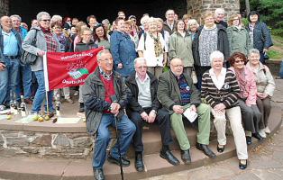 Zum Mittagessen waren wir in der bekannten Abtei-Brauerei angemeldet, wo es die guten „Gefillde“und sonstige saarländische Spezialtäten gibt. Dann brachten uns die Busse nach Orscholz, zum Aussichtspunkt Cloef, wo wir die Saarschleife von oben bewundern konnten. Hier entstand auch das Gruppenbild. Nächster Programmpunkt, Saarburg, ein wunderschönes Städtchen, mit einer malerischen Altstadt, dem romantischen Wasserfall und hoch über der Stadt die Burg. Hier war Zeit zum Bummeln, Relaxen oder einer Stadtrundfahrt mit dem „Bähnchen“.