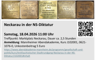 Ludwig Moldzyk wohnte in Neckarau und arbeitete beim Lanz. Er war Mitglied der Widerstandsgruppe um Georg Lechleiter und wurde 1942 hingerichtet. Warum? Benno Furchheimer war Jude. Warum wurde sein Kaufaus am Neckarauer Marktplatz zerstört? Erwin Strohmeier war Verlagsleiter der kommunistischen Arbeiterzeitung. Er floh aus Deutschland. Was wurde aus ihm?