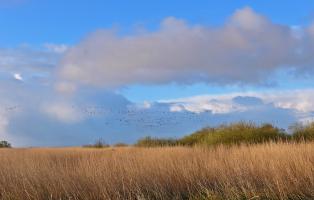 Ab Mitte April bis Anfang Mai machen die Ringelgänse Station im Wattenmeer bei den schleswig-holsteinischen Halligen – aber nicht nur die. Es wird sich uns eine umfangreiche Vogelwelt präsentieren: Weißwangengänse, Säbelschnäbler, Brachvögel, Rotschenkel und Austernfischer, mit etwas Glück auch Blaukehlchen und Rohrdommel. Aber auch das Binnenland bietet einige Attraktionen wie z.B. die Theodor Storm Stadt Husum oder die Windmühle von Hannes Wader.